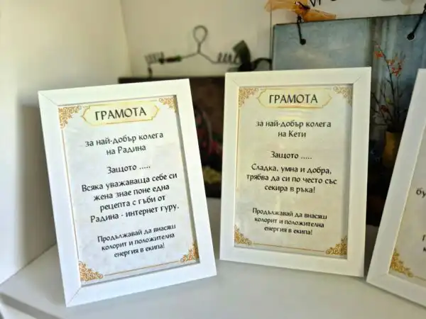 Добавяме име, дата или послание; възможни са цветове и елементи по избор.