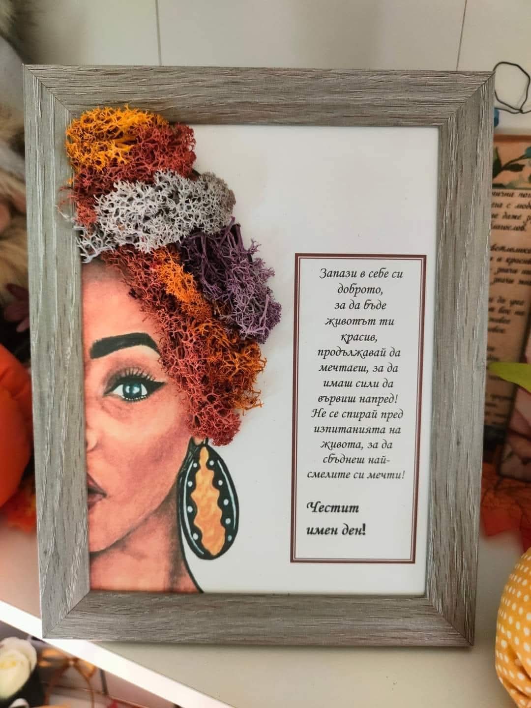 Чрез персоналните картини изработени с мъх може да зарадвате любим човек, да отправите благодарност към лекар, акушерка, зъболекар, учител и много други.
