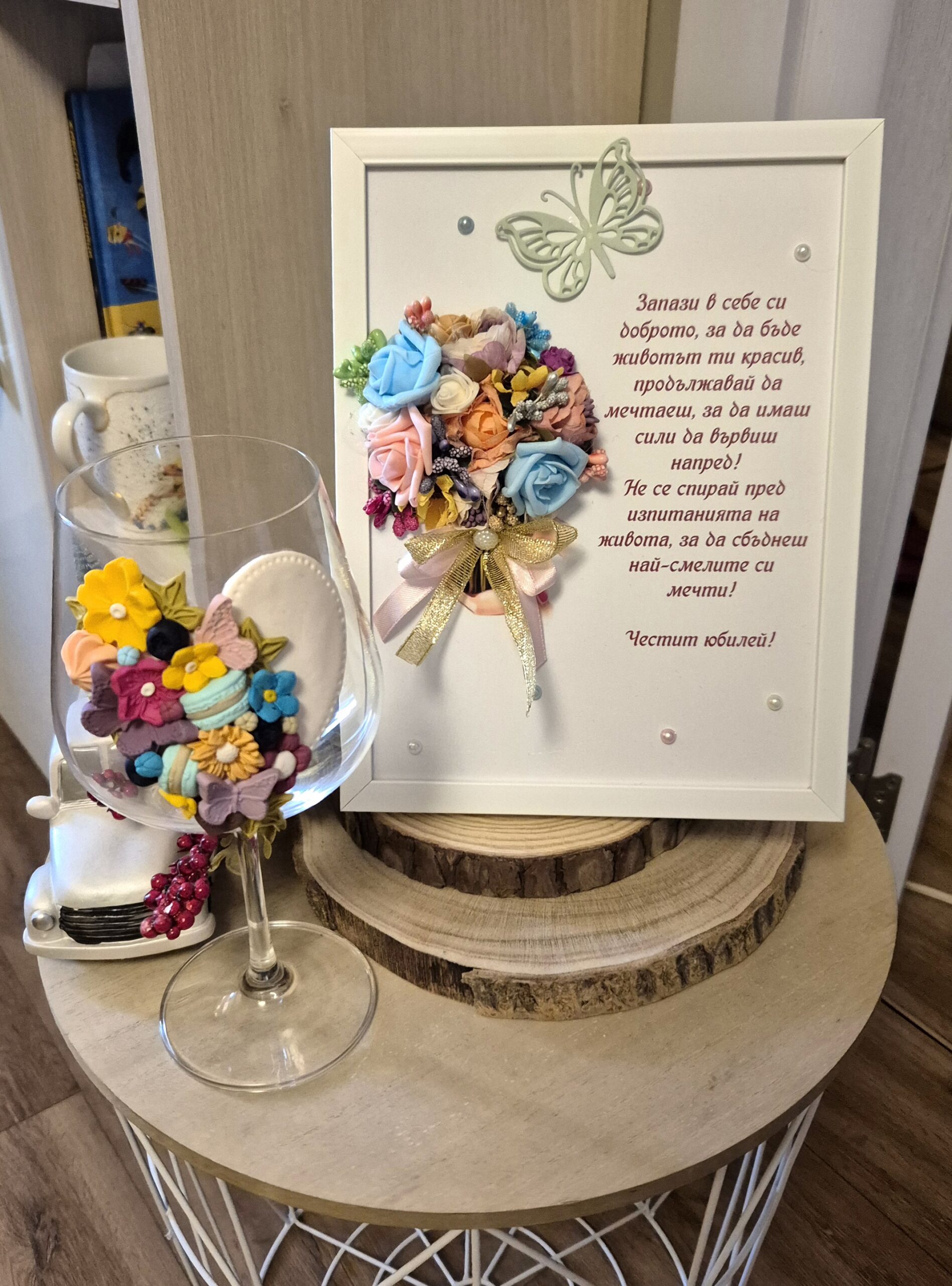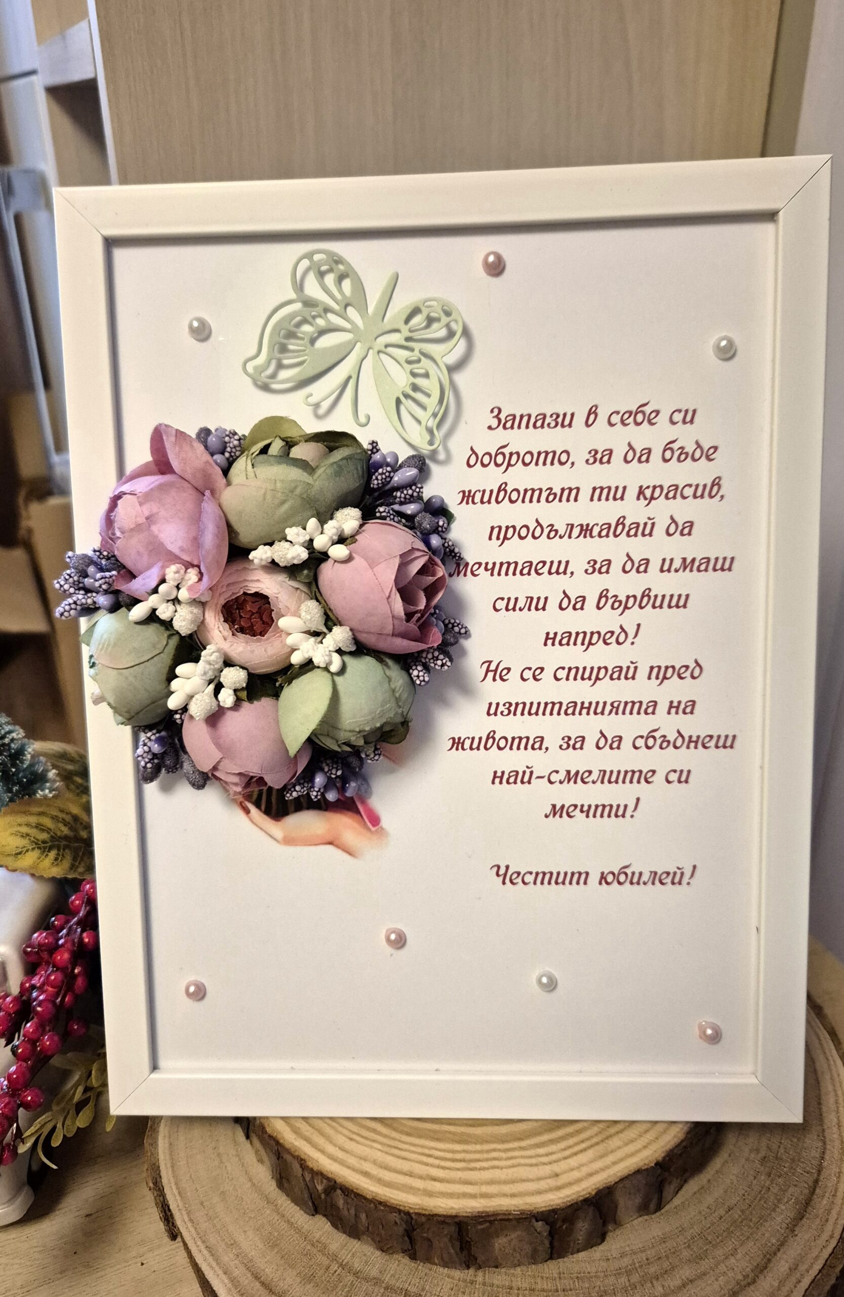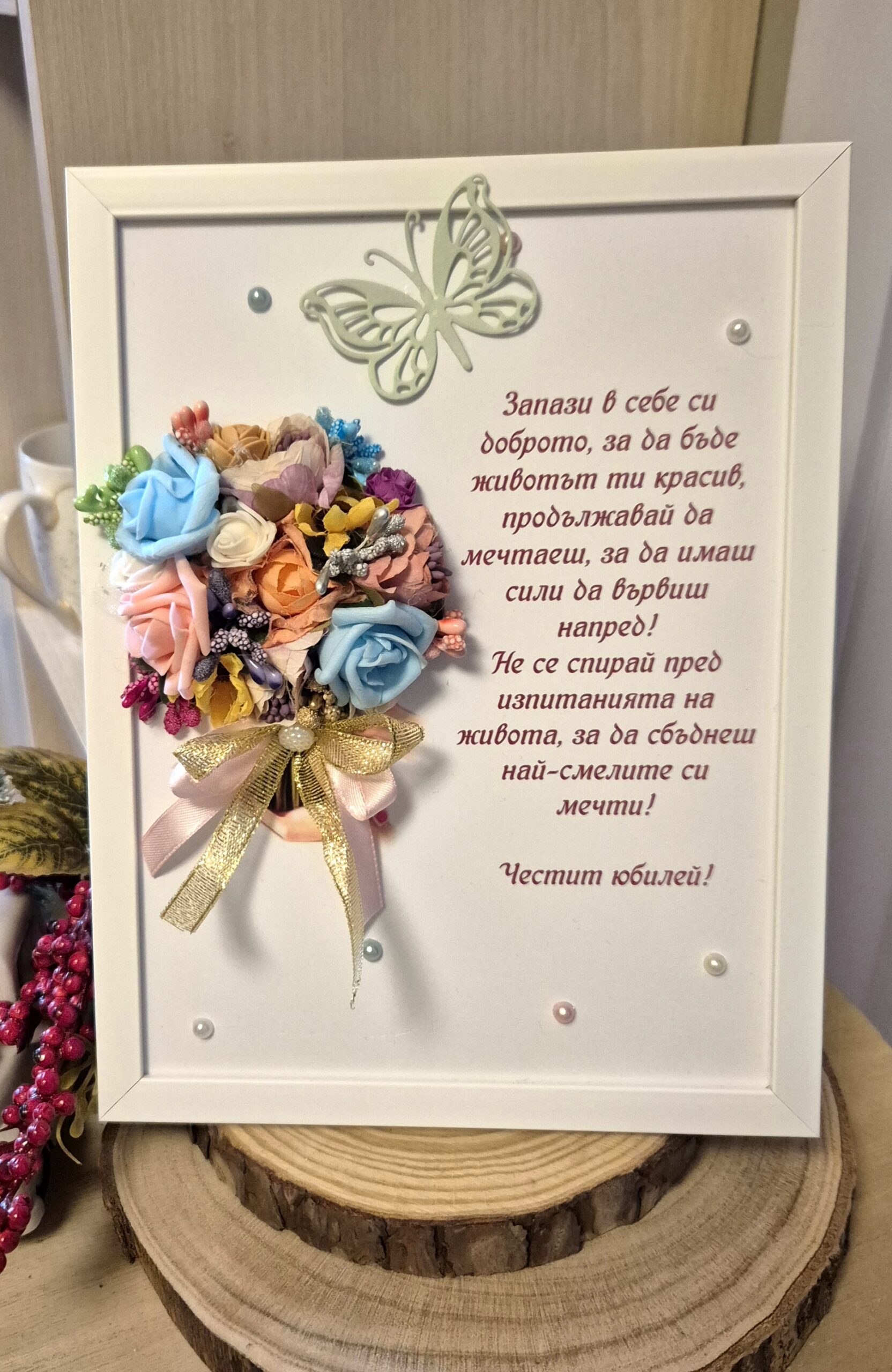 Подарете не просто предмет, а красиво послание, което остава за цял живот. Нашите ръчно изработени арт пана съчетават нежността на 3D цветята с вдъхновяващи думи. Перфектният избор за специален юбилей, с който да пожелаете доброта, смелост и сбъднати мечти.