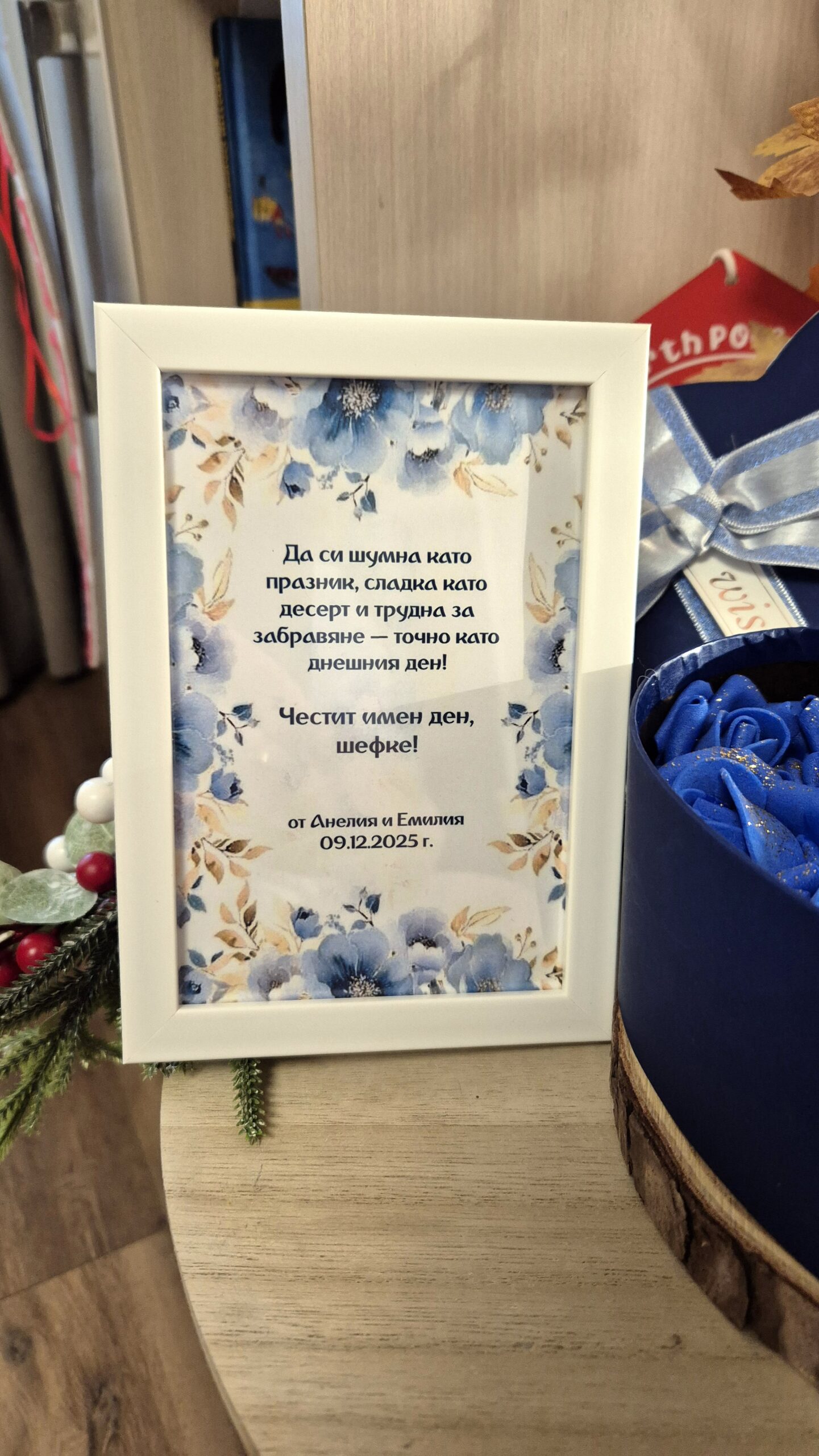 Добавяме име, дата или послание; възможни са цветове и елементи по избор.