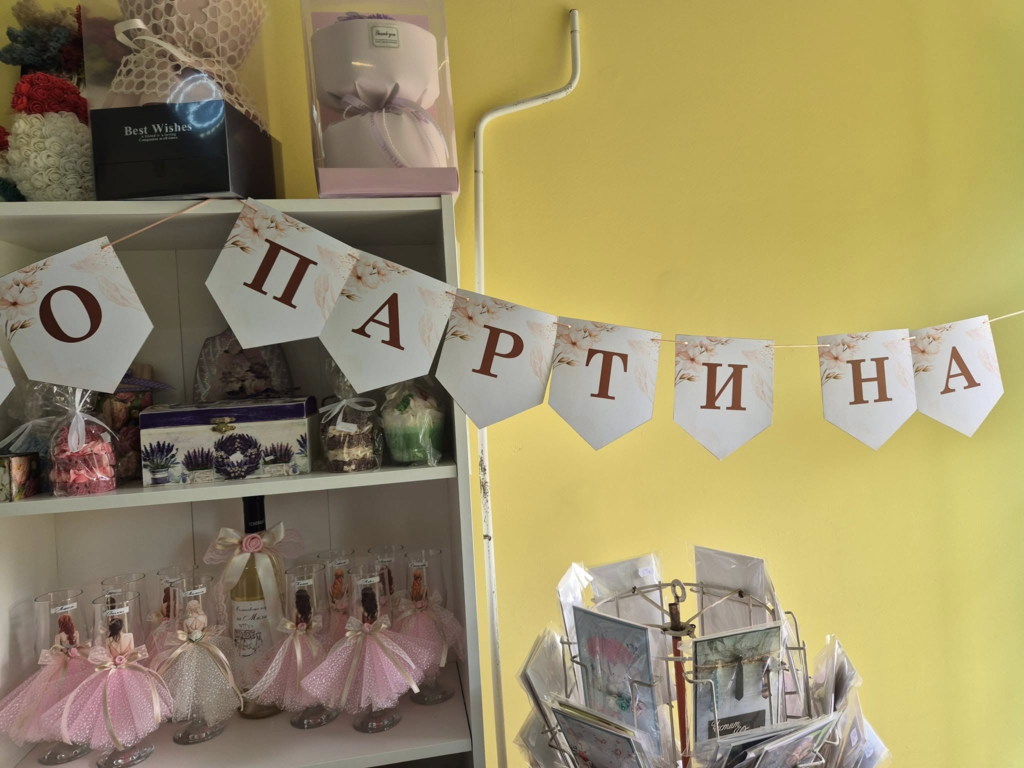 - Банерът на изображението е аксесоар, който се нарича „Персонализиран парти банер“ или „Надпис за парти с име“.
