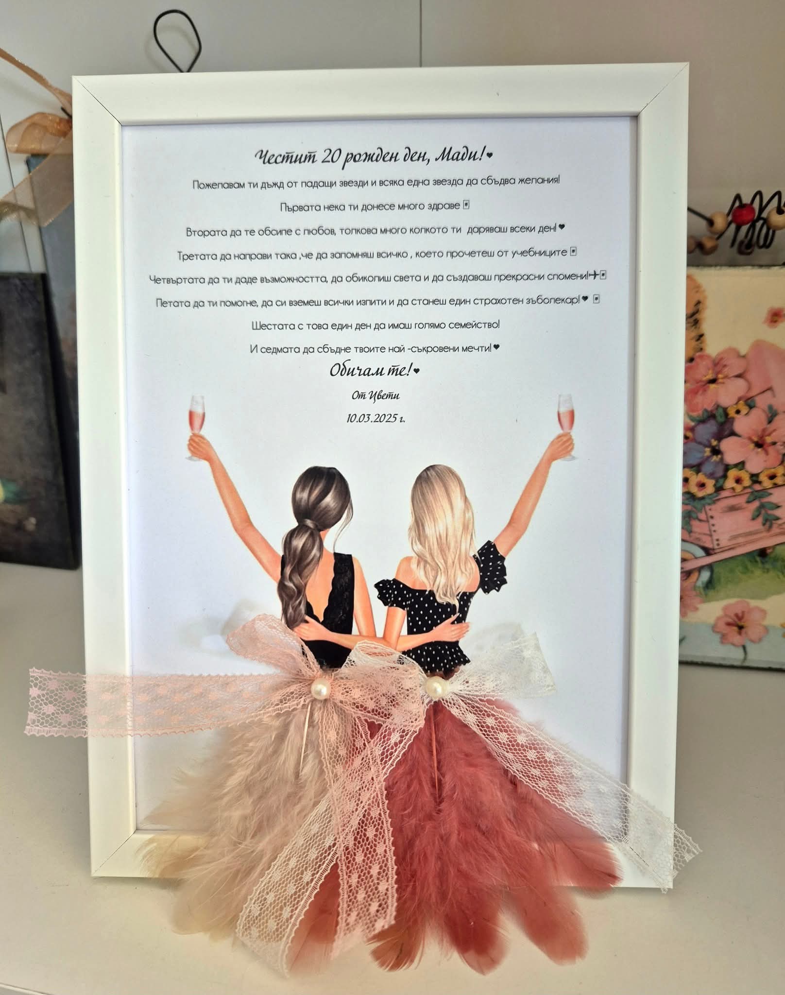 Добавяме име, дата или послание; възможни са цветове и елементи по избор.