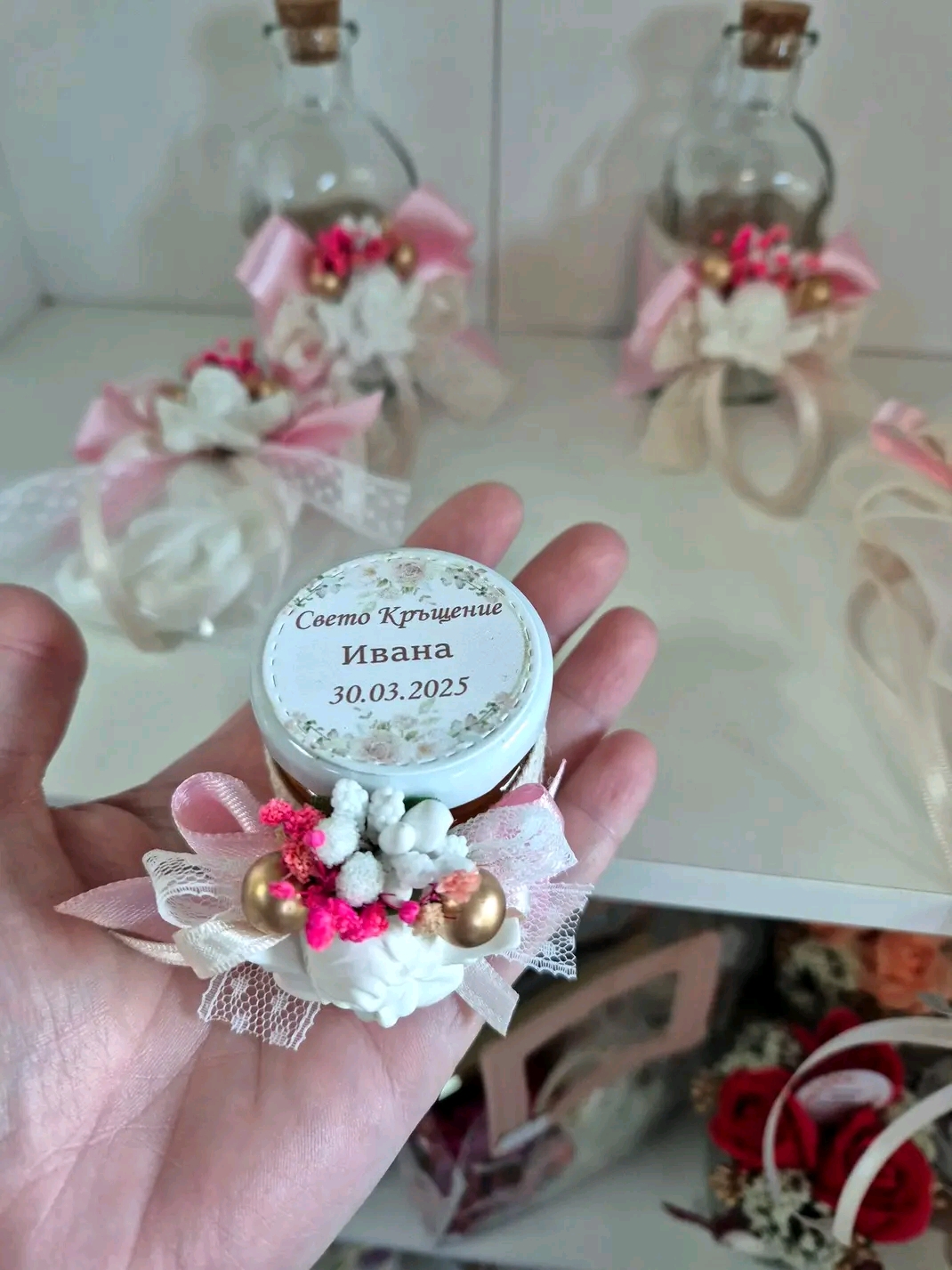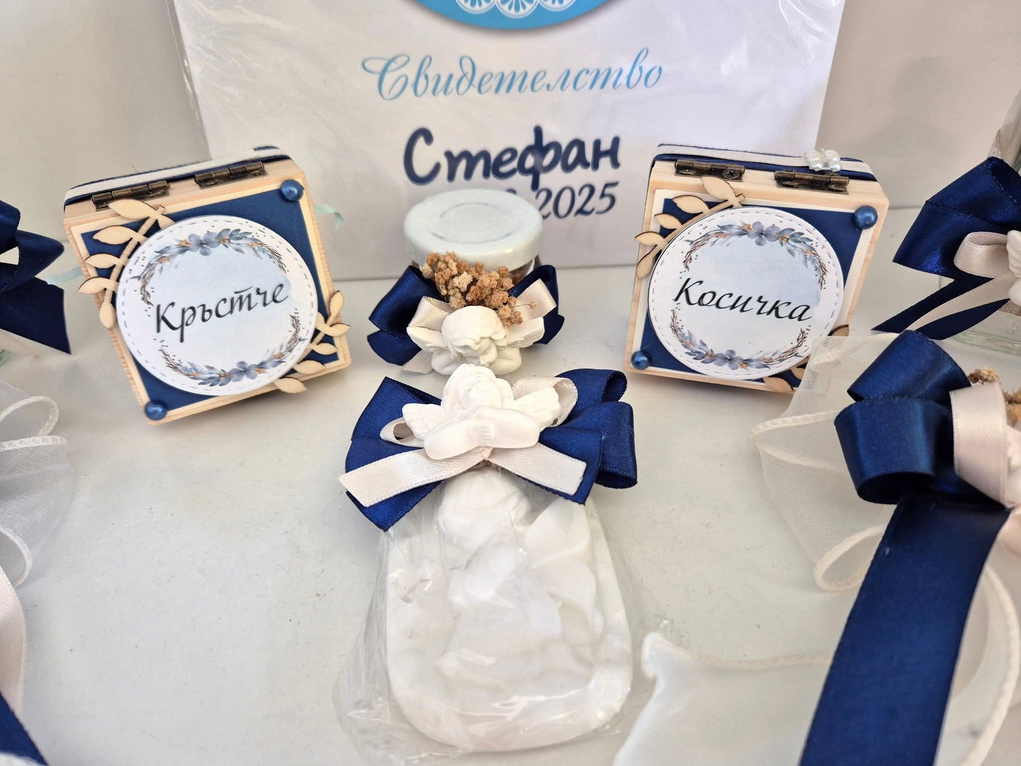 Добавяме име, дата или послание; възможни са цветове и елементи по избор.