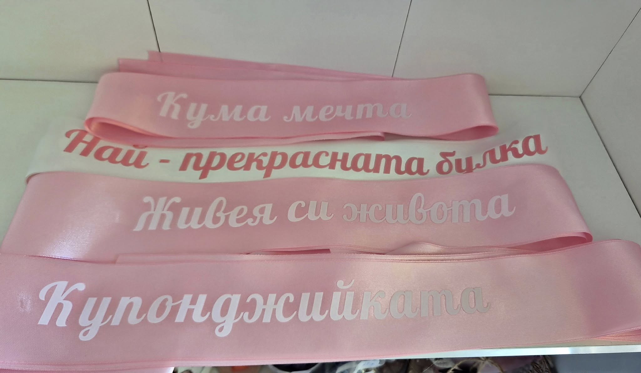 - Качествена изработка: Лентите са изработени от мек и издръжлив сатен, за да издържат през цялото парти.