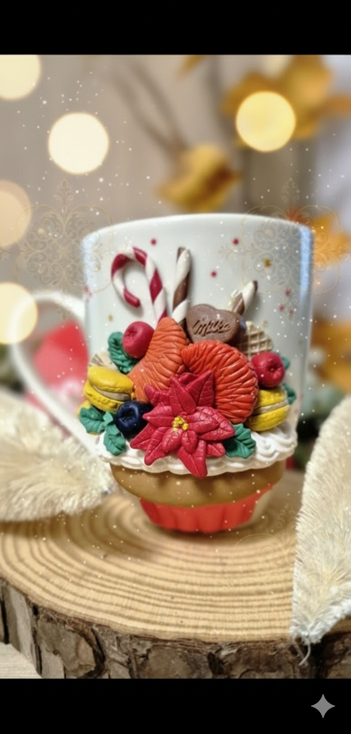 Изпичане: Цялата чаша с декорираните елементи се изпича в пещ/фурна съгласно инструкциите за полимерната глина.