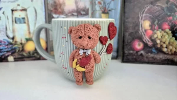 Чаша за топли напитки с ръчно изработена декорация от полимерна глина!