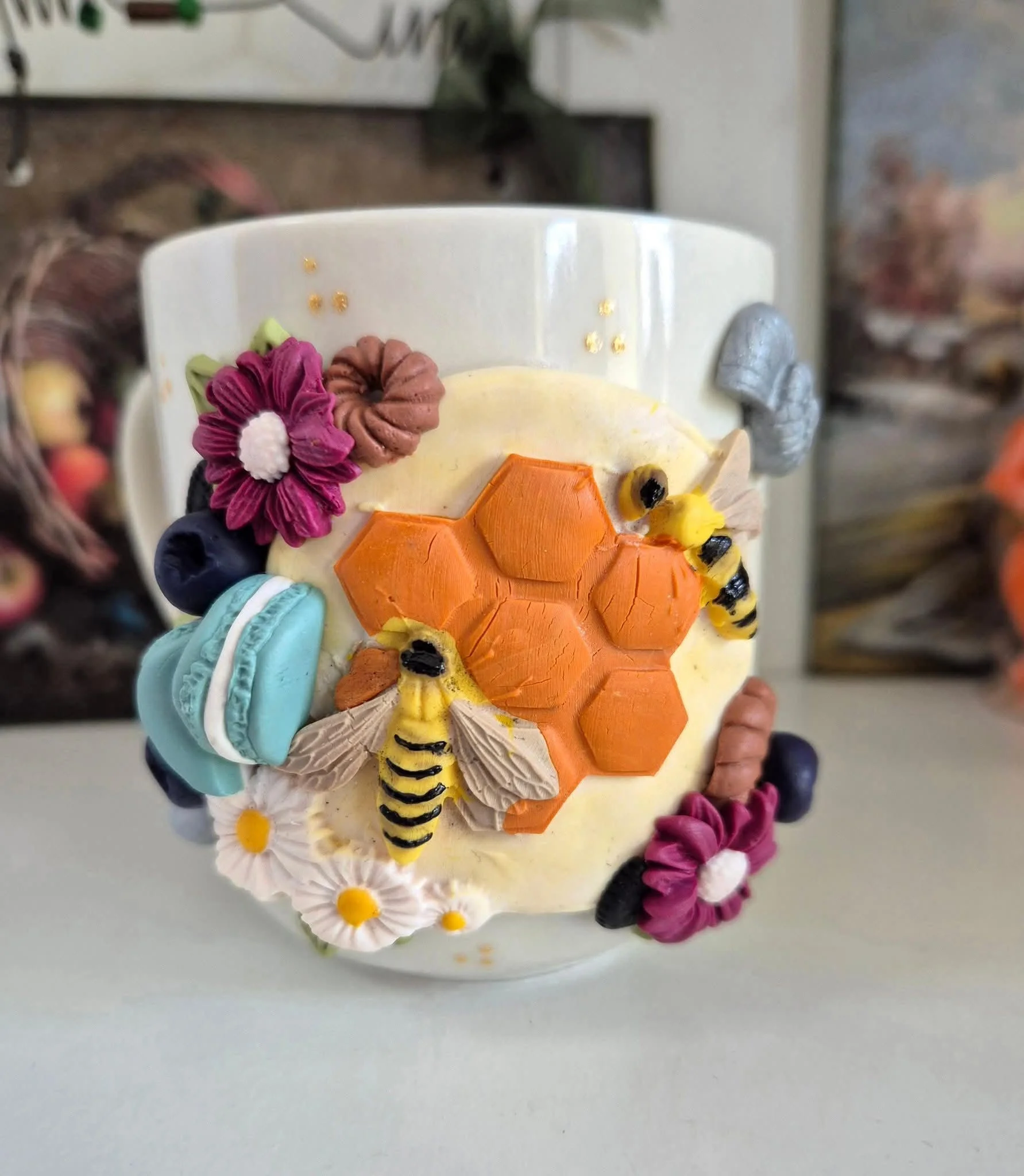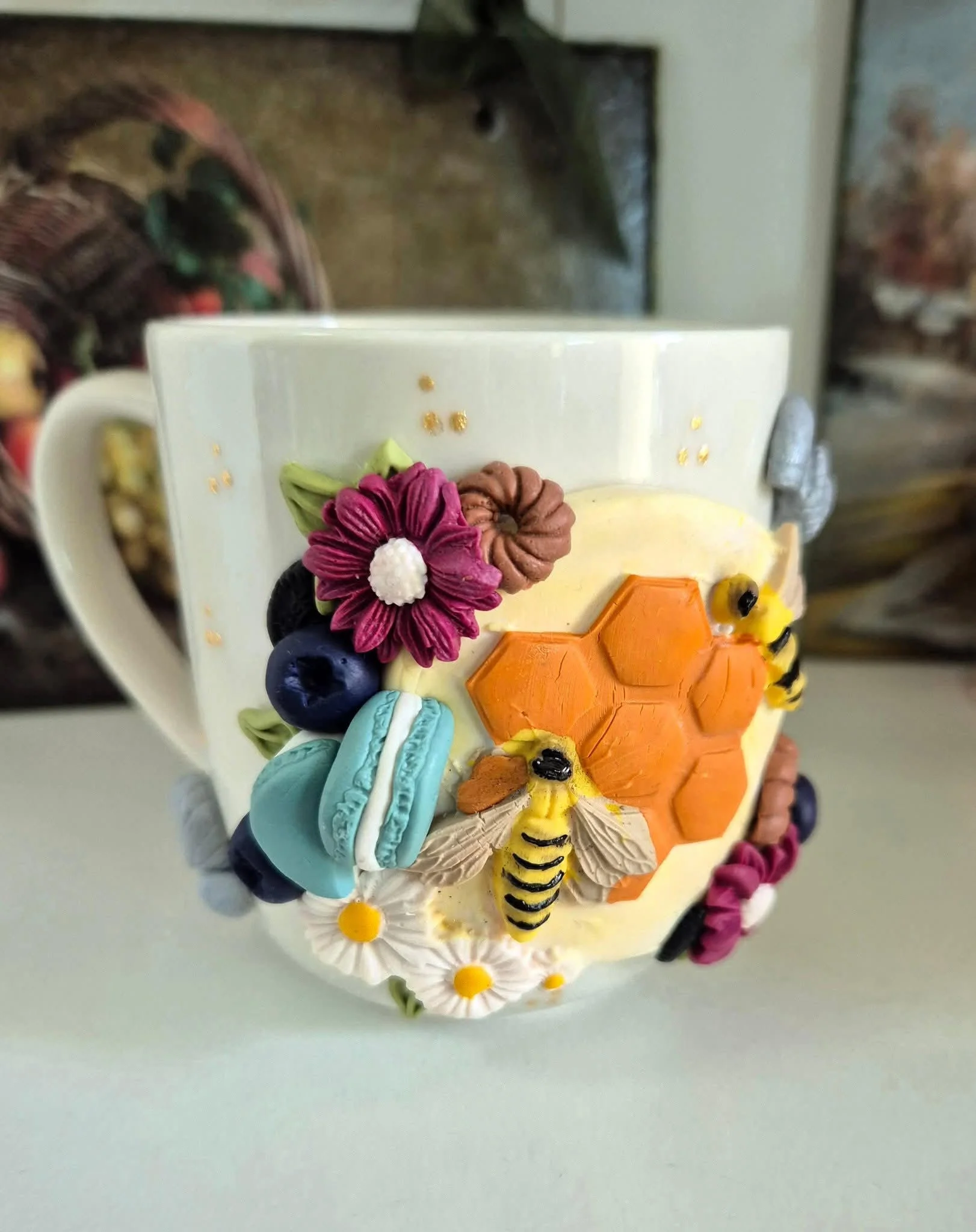 Чаша за топли напитки с ръчно изработена декорация от полимерна глина!