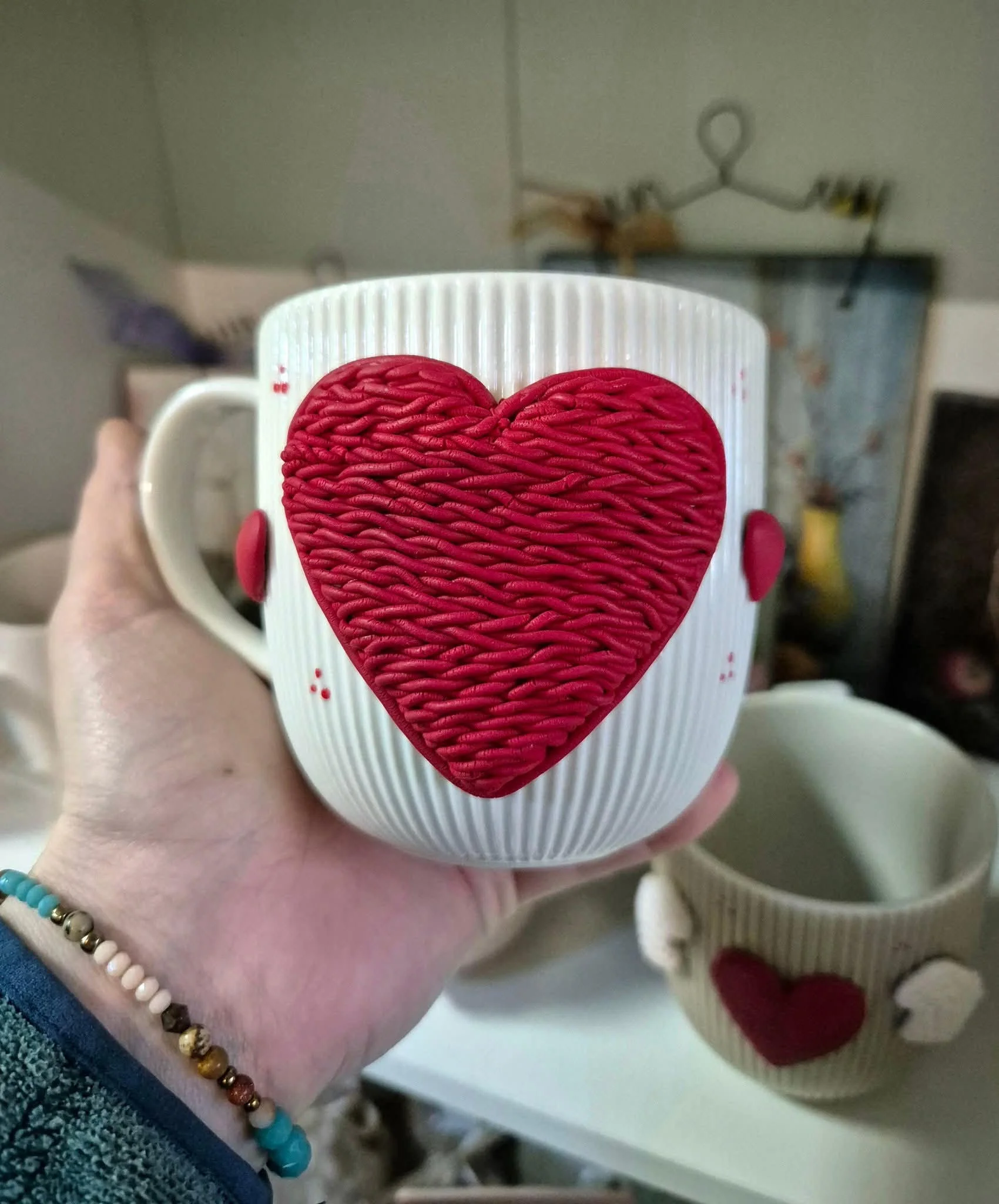 Чаша за топли напитки с ръчно изработена декорация от полимерна глина!