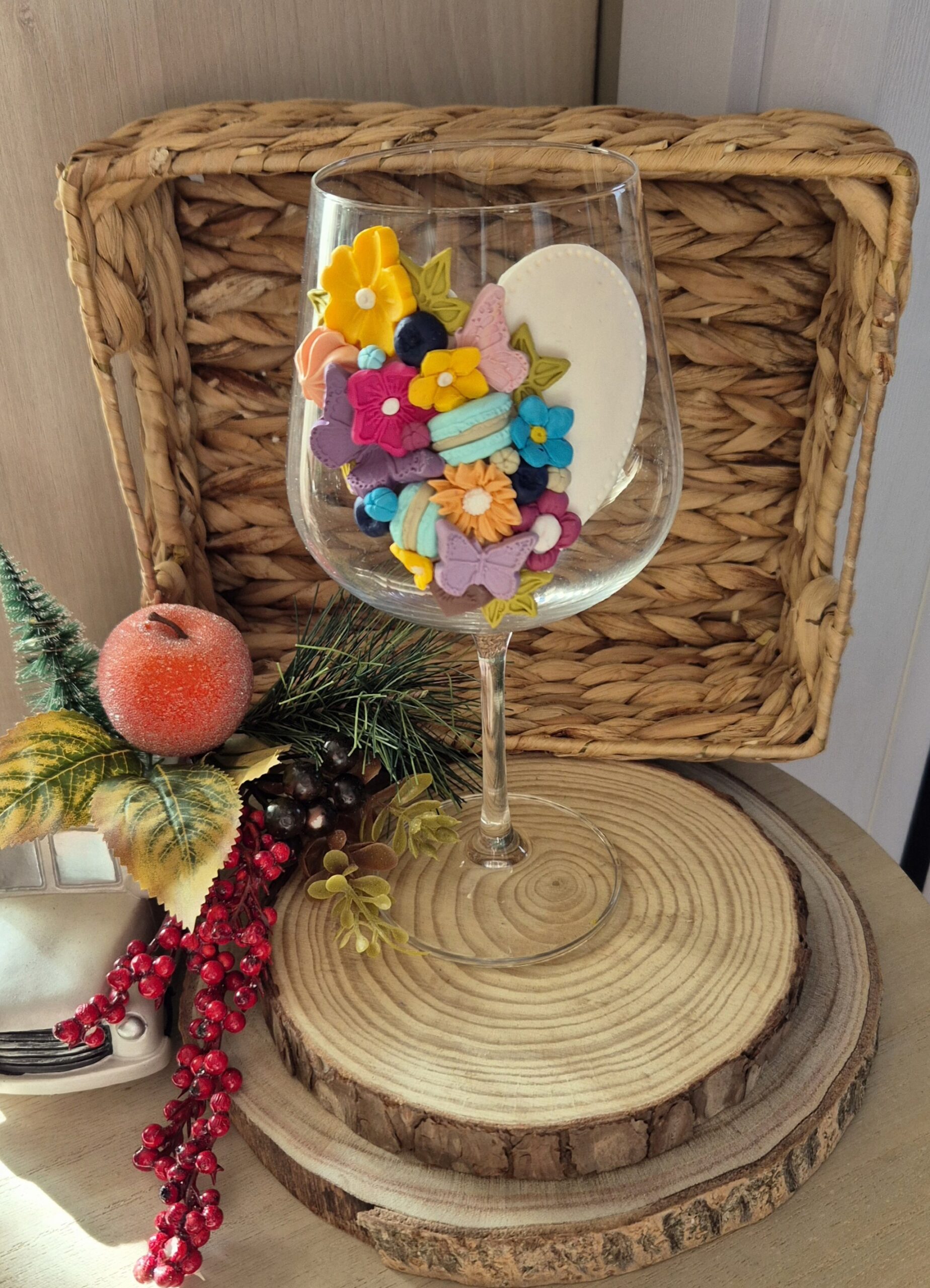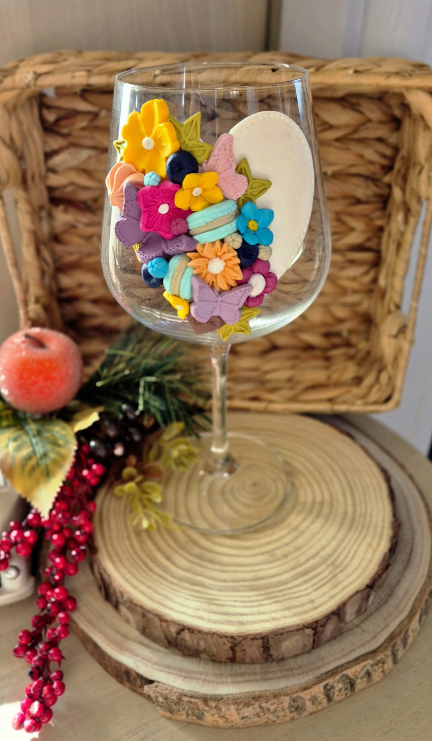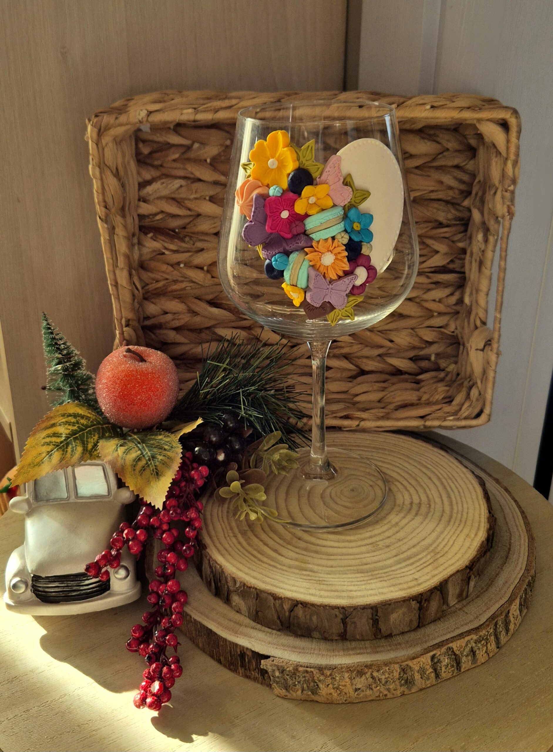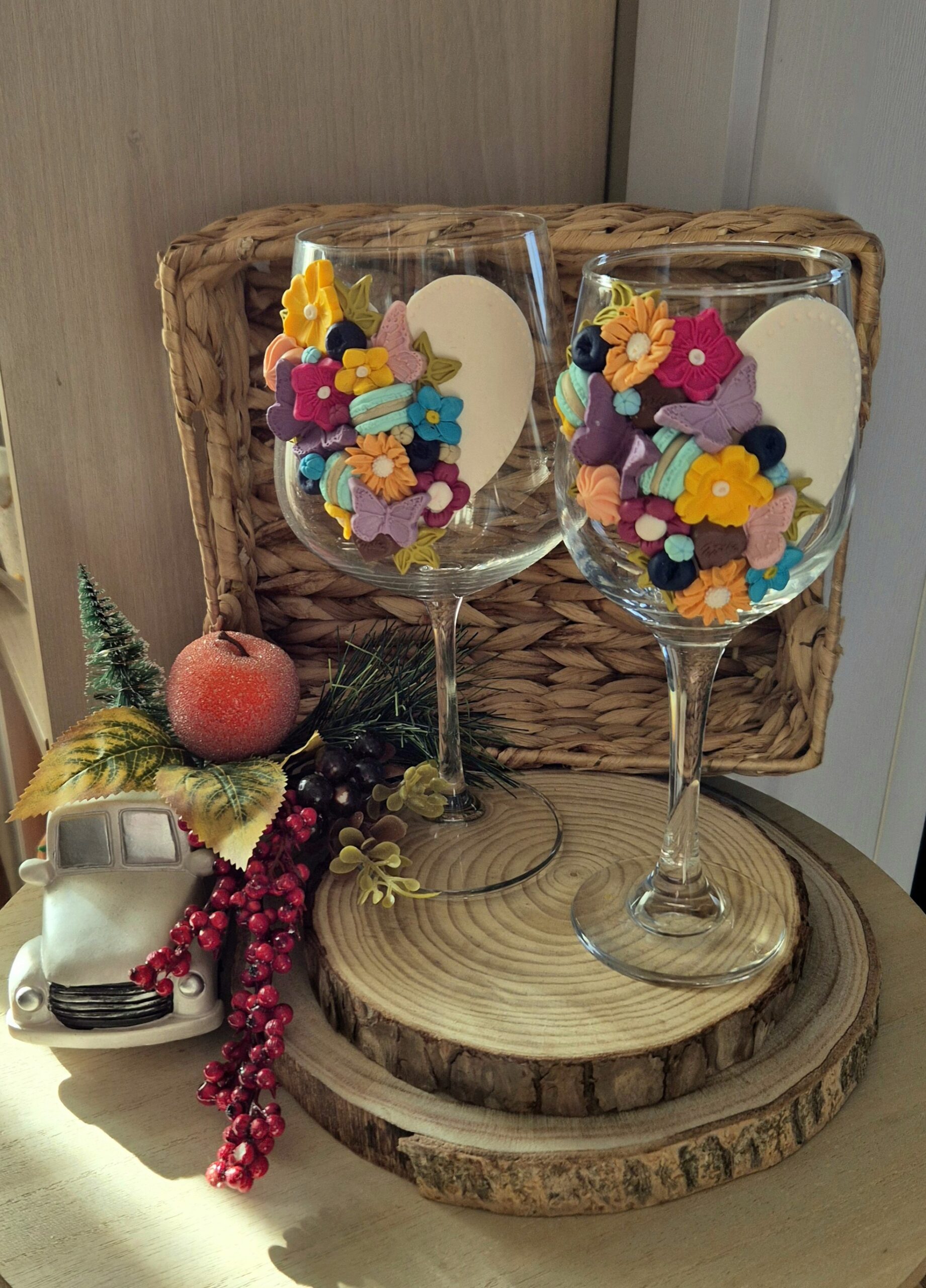 Добавете щипка цвят и много стил към вашата маса с нашите чаши „Сладка градина“. Ръчно изработената декорация от полимерна глина е устойчива и създава неповторимо тактилно усещане. Подходящи за вино, коктейли или просто за украса, която събира погледите.